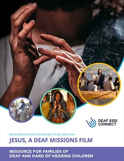 This curriculum provides guidance to families with deaf and hard of hearing children between the ages of 6-12 . Your family will be immersed in sign language and the story of Jesus. It can be an incredible tool for your family to learn and connect to each other and Jesus . This study includes twelve lessons, each on a different scripture scene and age-appropriate activities that support biblical and sign language literacy.